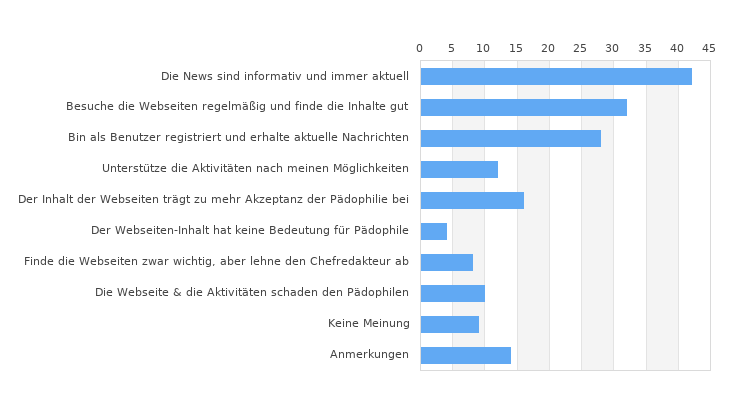 | Der Inhalt der Webseiten trägt zu mehr Akzeptanz der Pädophilie bei | 16 | |||||||||||||||||||||||||||||