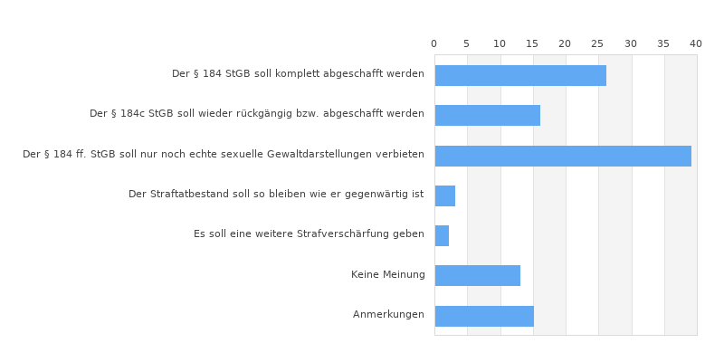| Der § 184 ff. StGB soll nur noch echte sexuelle Gewaltdarstellungen verbieten | 39 | |||||||||||||||||||||||||||||||